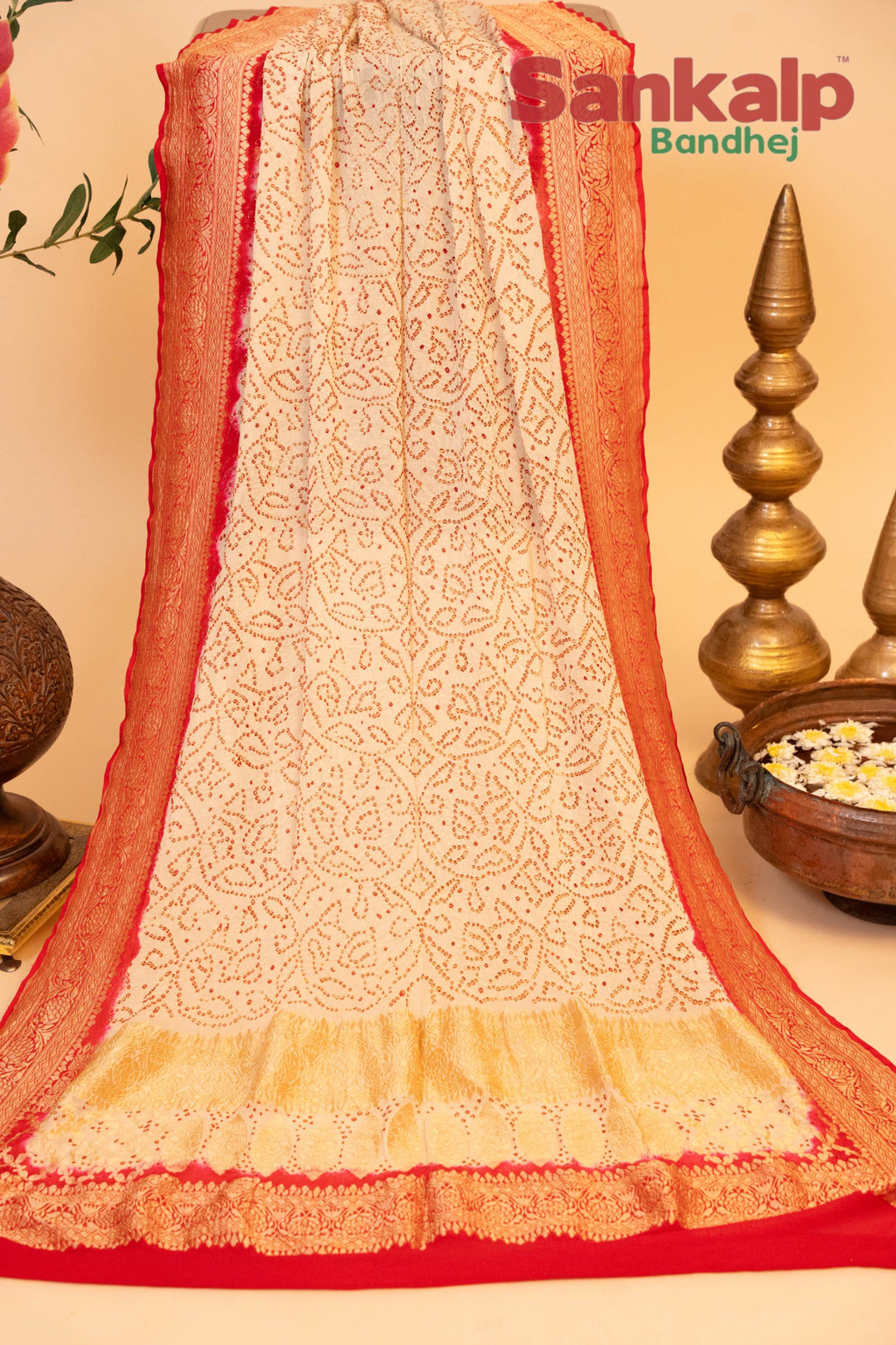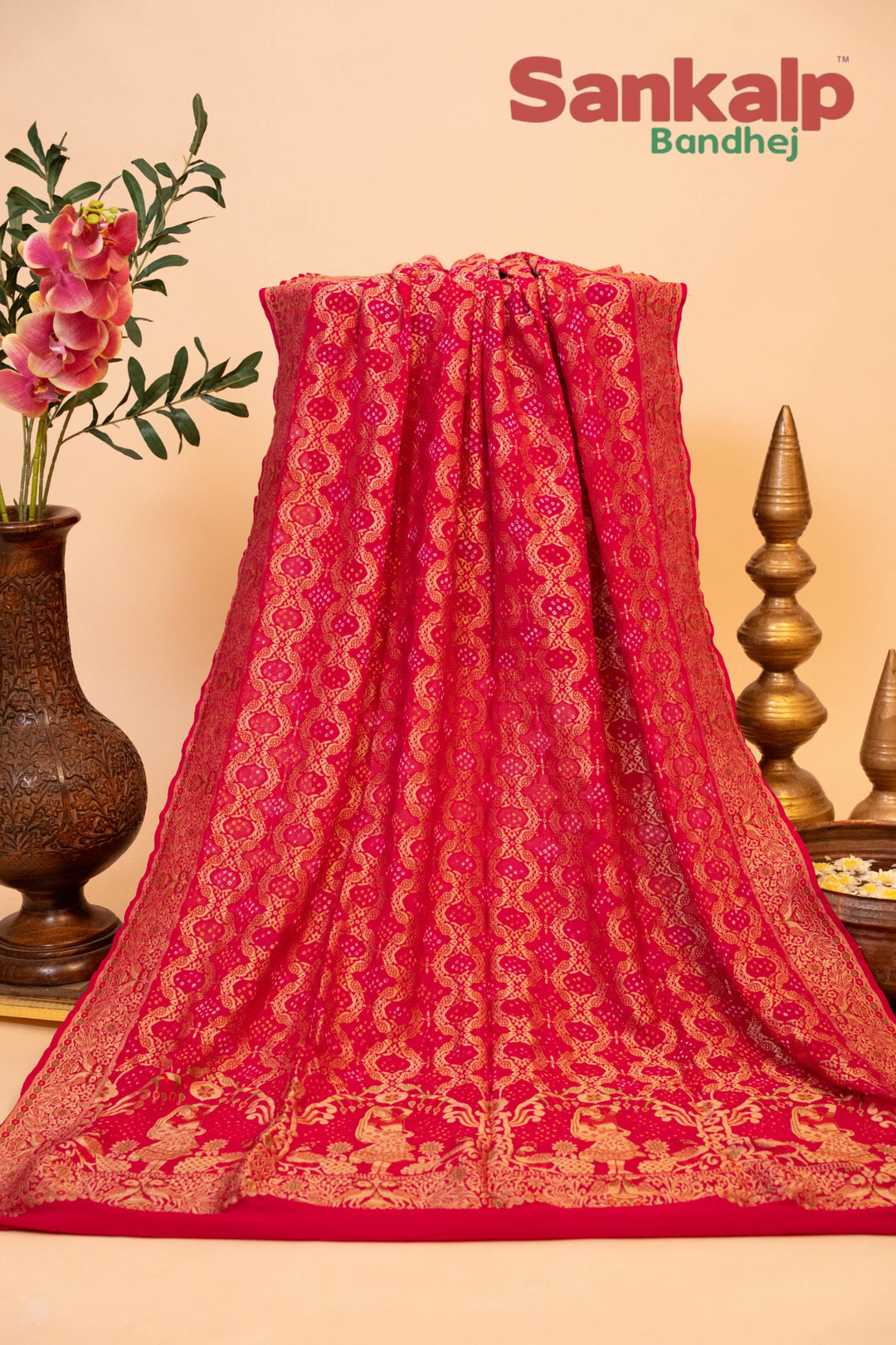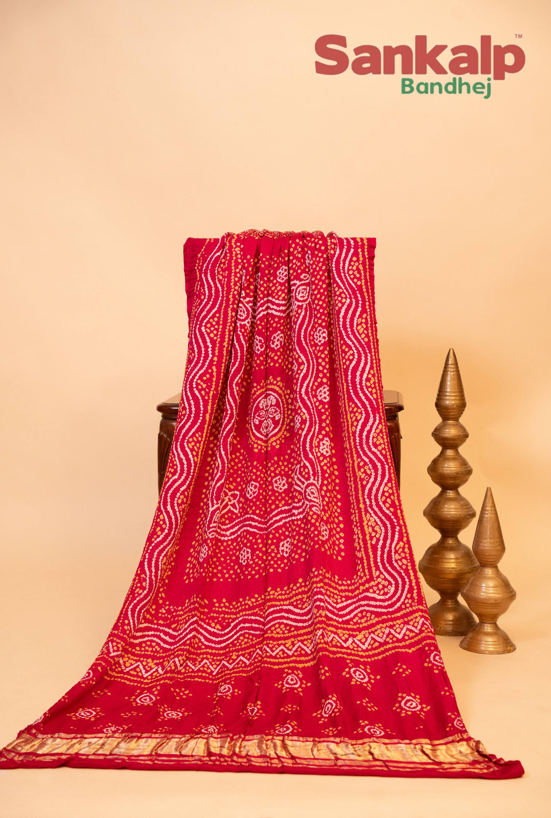 Red Gajji Silk Chandrakani Bandhani Dupatta