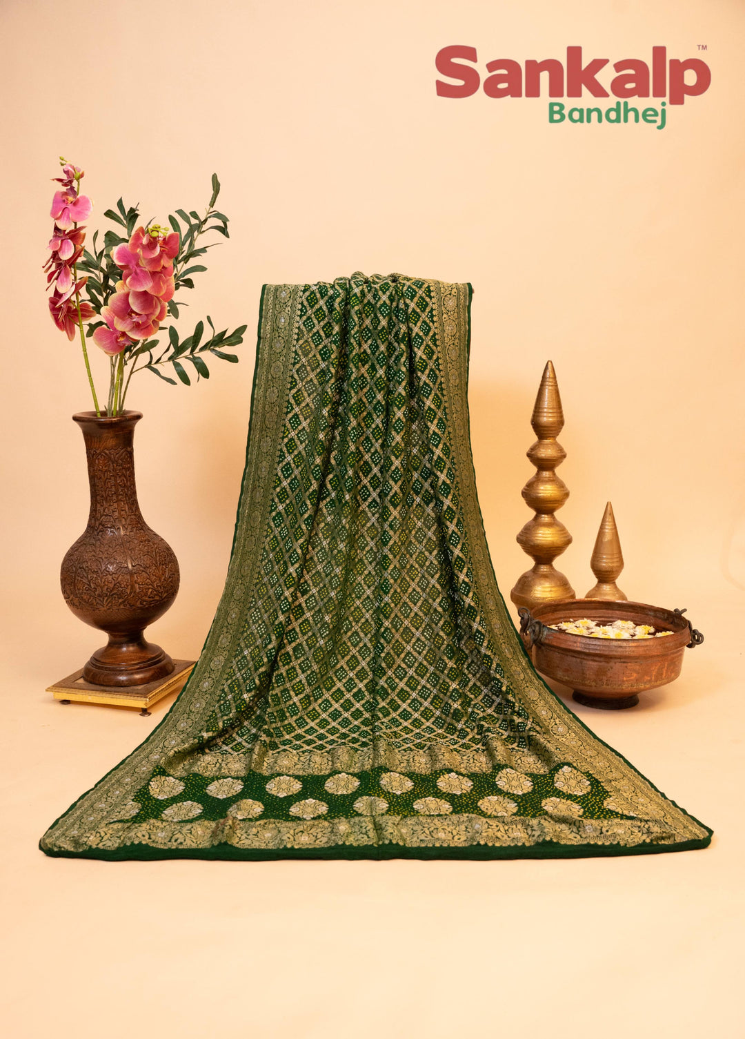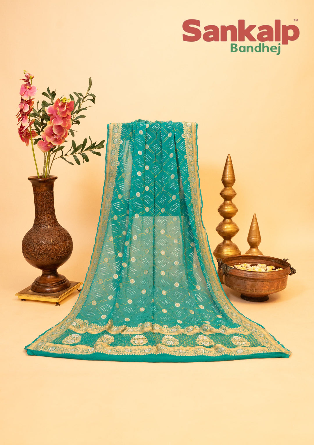 Neem Zari Georgette Bandhani Duppata In Mehendi Green Color