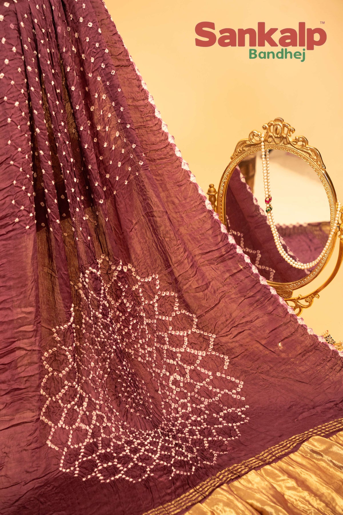 Deep Wine Pure Model Silk Bandhani Saree With Lagdi Patta