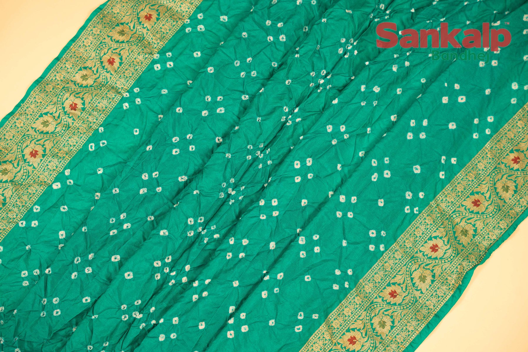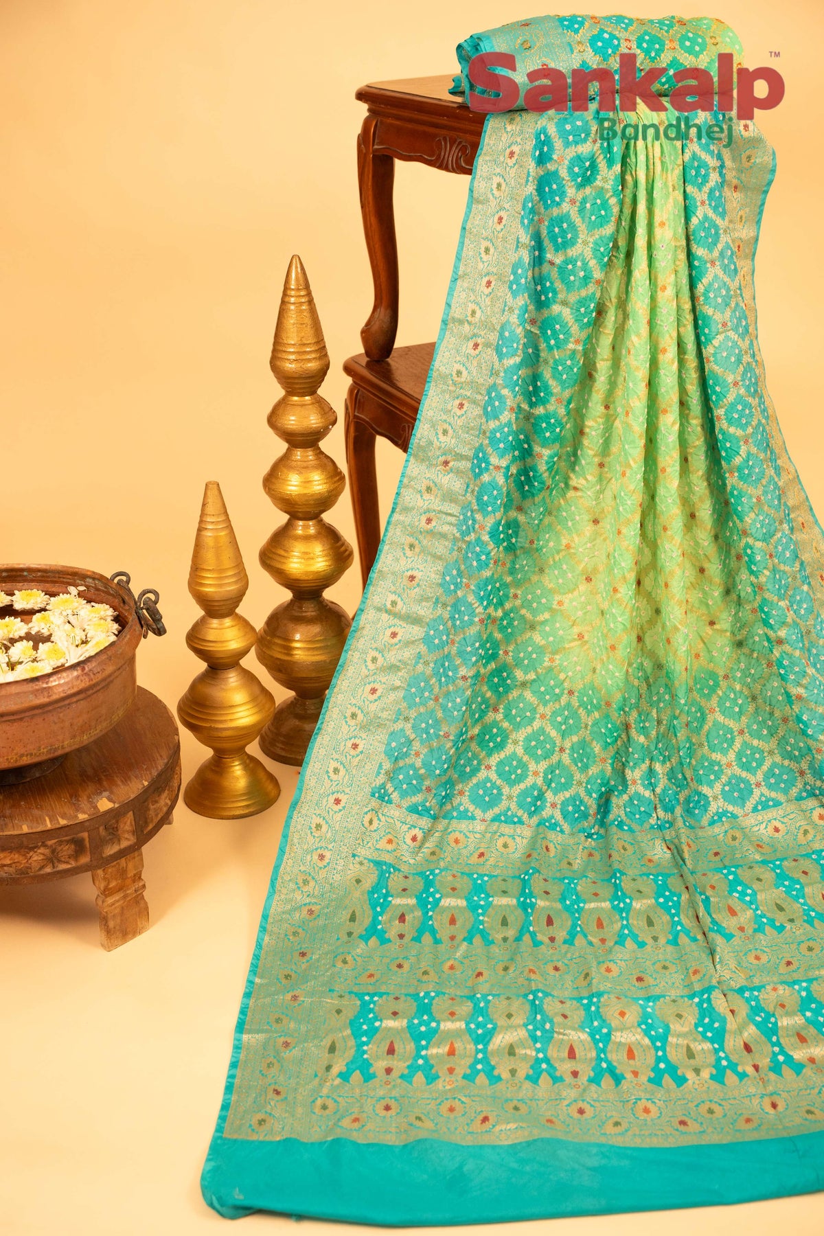 Dual Color Pure Dupion Silk Bandhej Saree With Meena Work