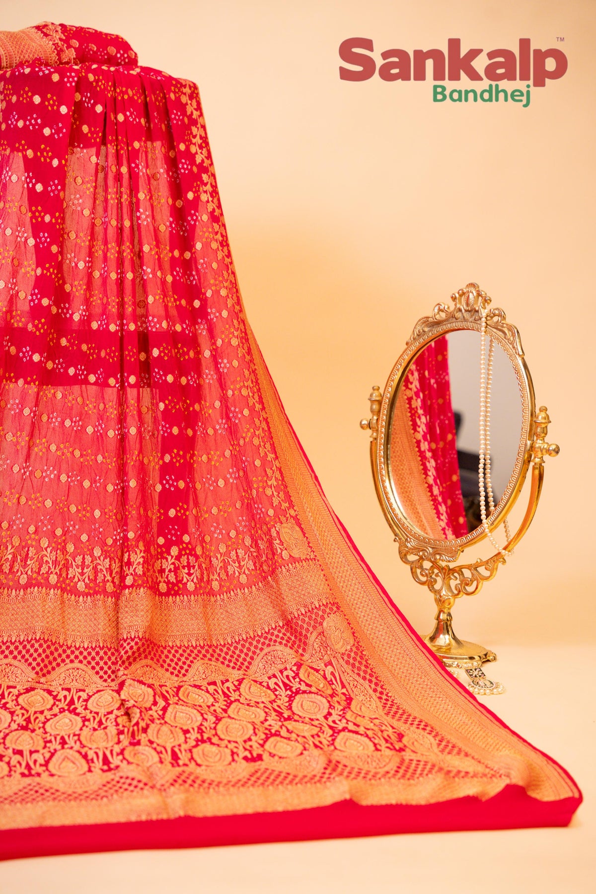 Floral Butti Design Pure Banarasi Georgette Bandhej Saree