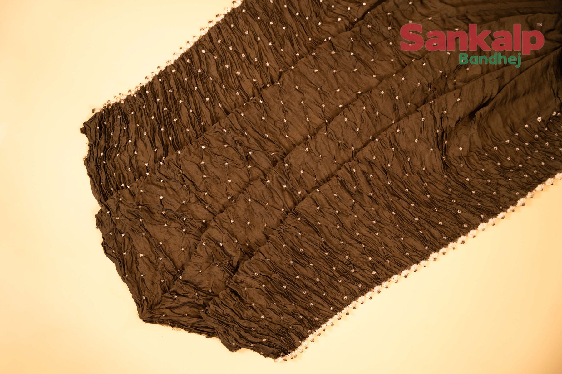 Light Chocolate Pure Modal Silk Lagdi Patta Pallav Bandhani Saree