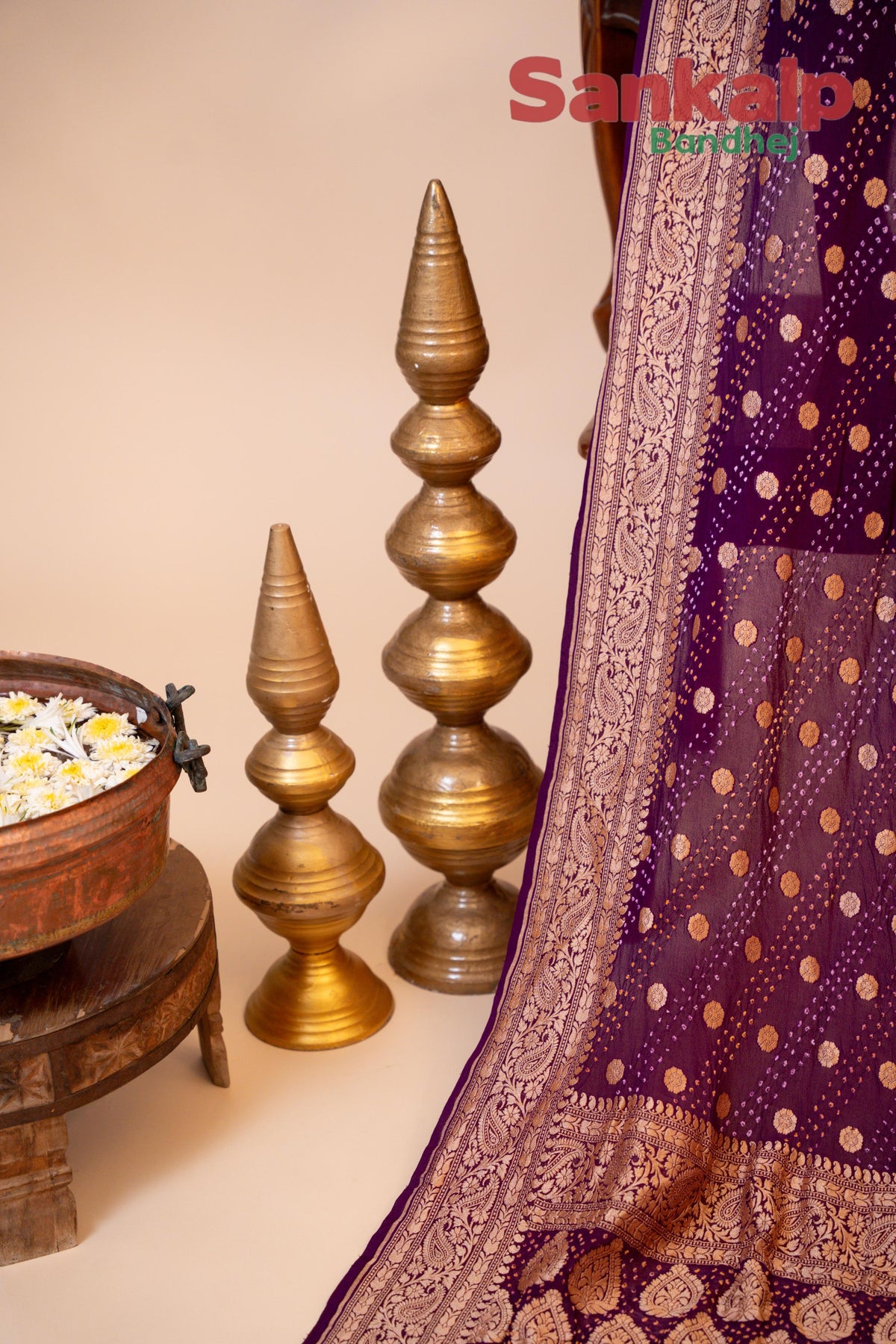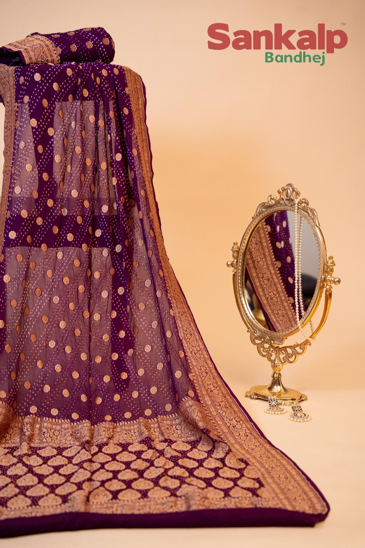Neem Zari Pure Banarasi Georgette Rai Bandhej Saree