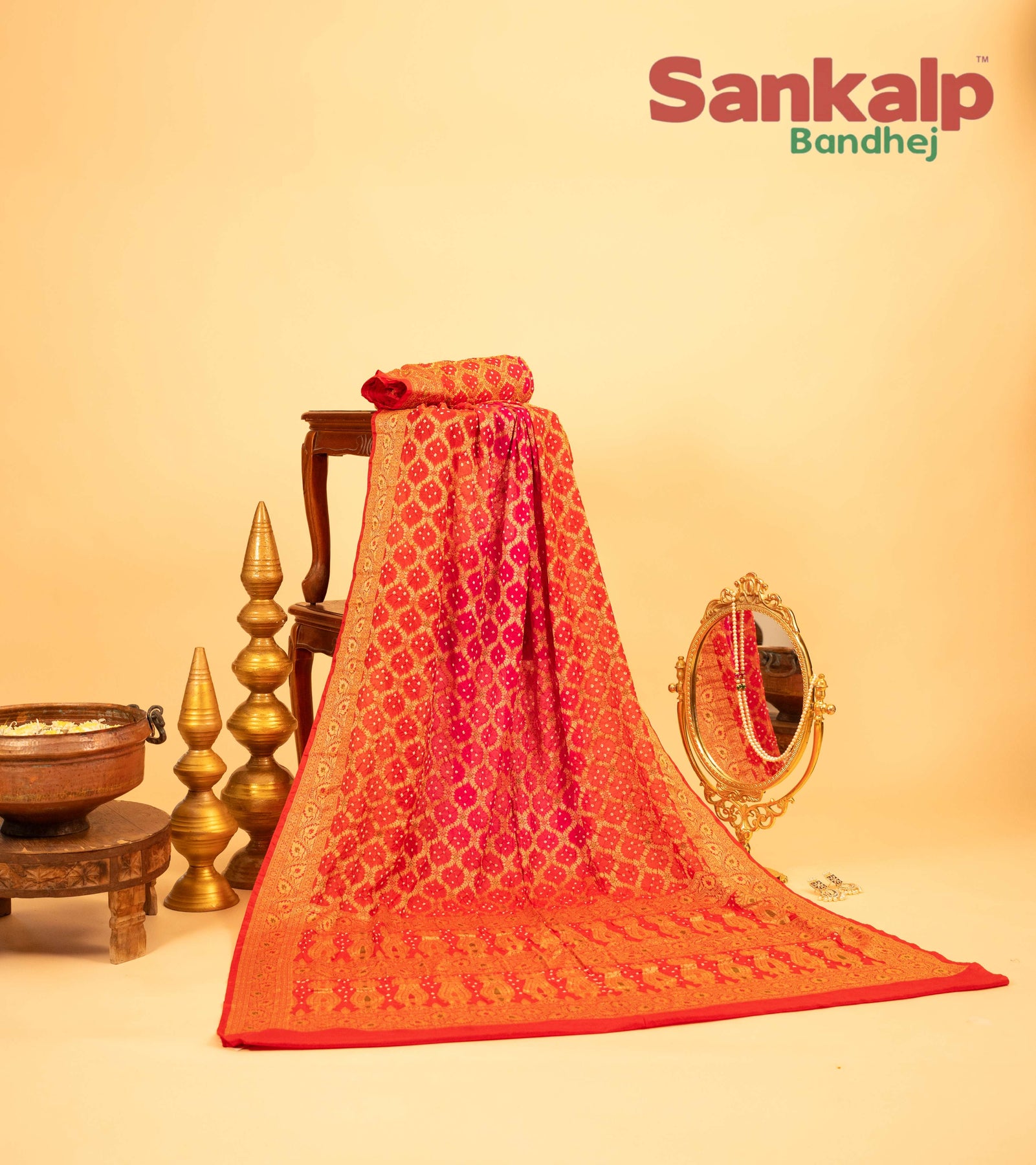 Pure Dupion Silk Bandhej Saree With Meena Work
