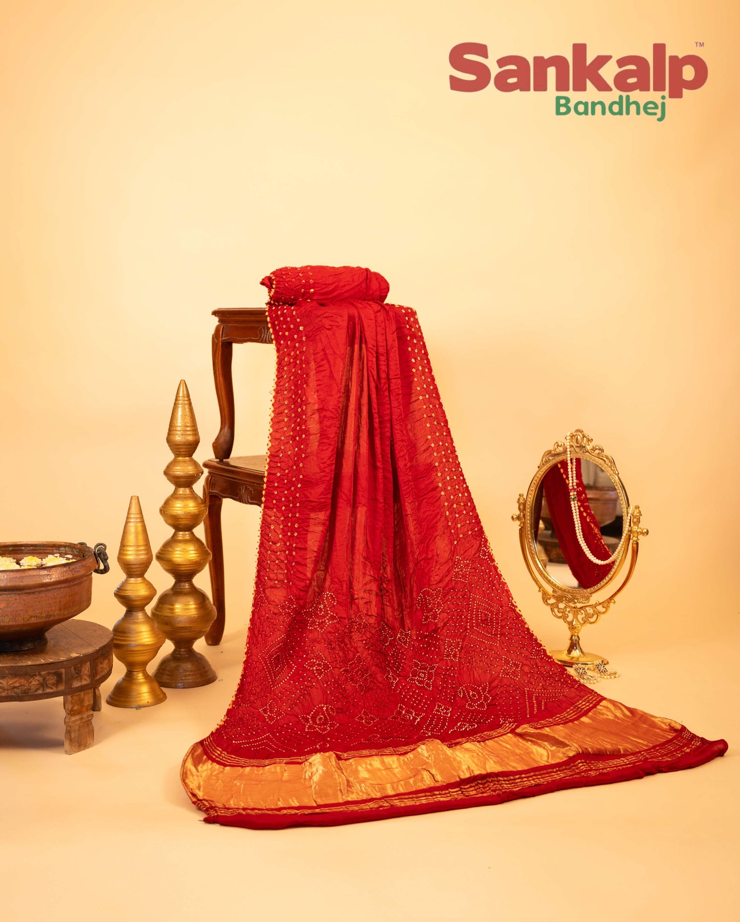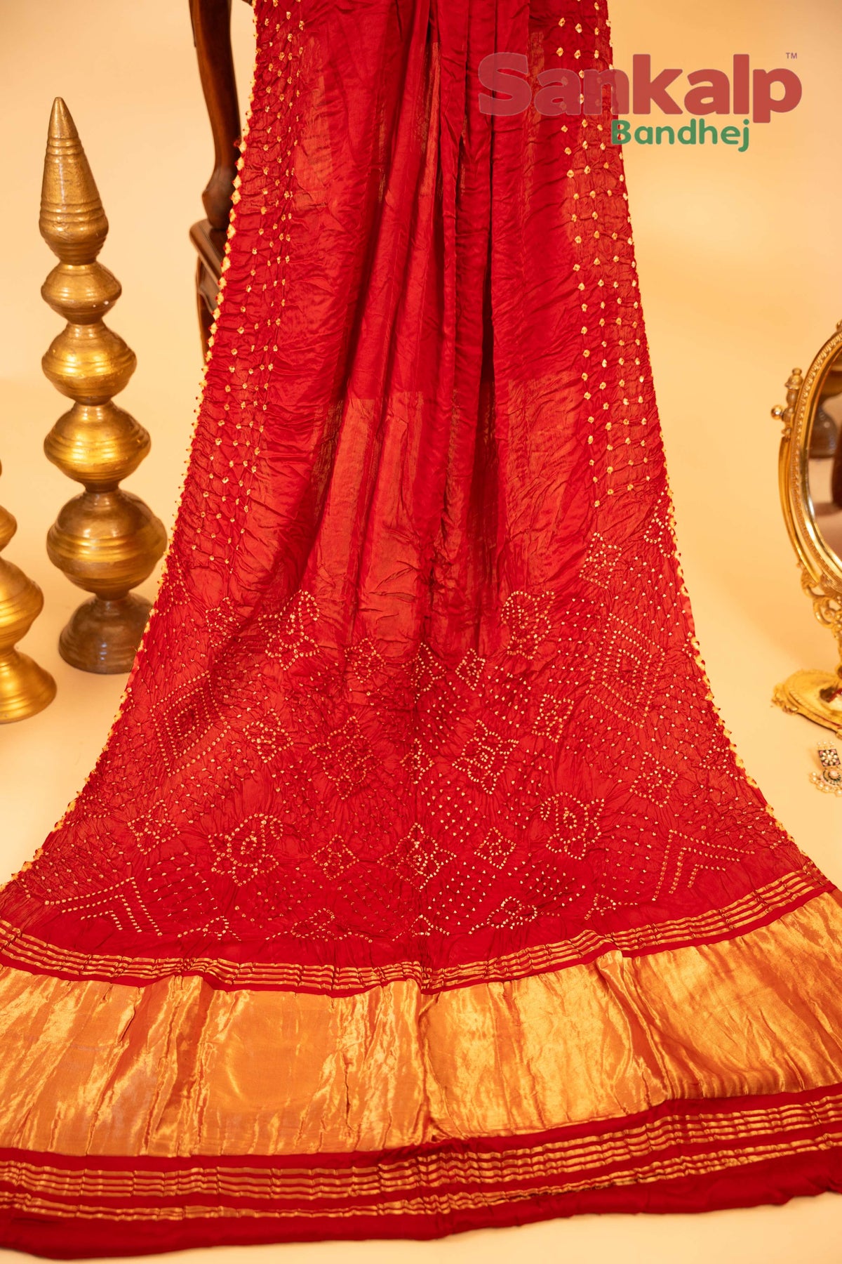 Red Pure Modal Silk Lagdi Patta Pallav Bandhani Saree